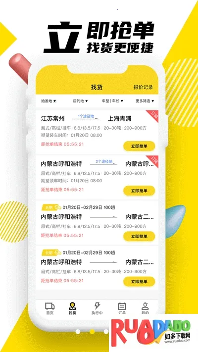 4. 司机能查看货源,认证并交押金后可抢单提供运输服务。