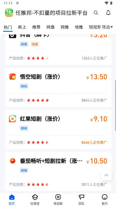 1、项目资源丰富,提供海量地推网推项目,涵盖网盘、小说、短剧、浏览器等多种类型。