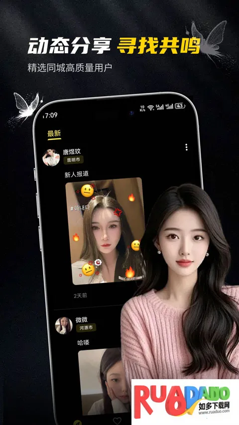 1. 基于地理位置与兴趣标签,算法智能推荐同城优质用户,快速拓展社交圈,约会更默契。