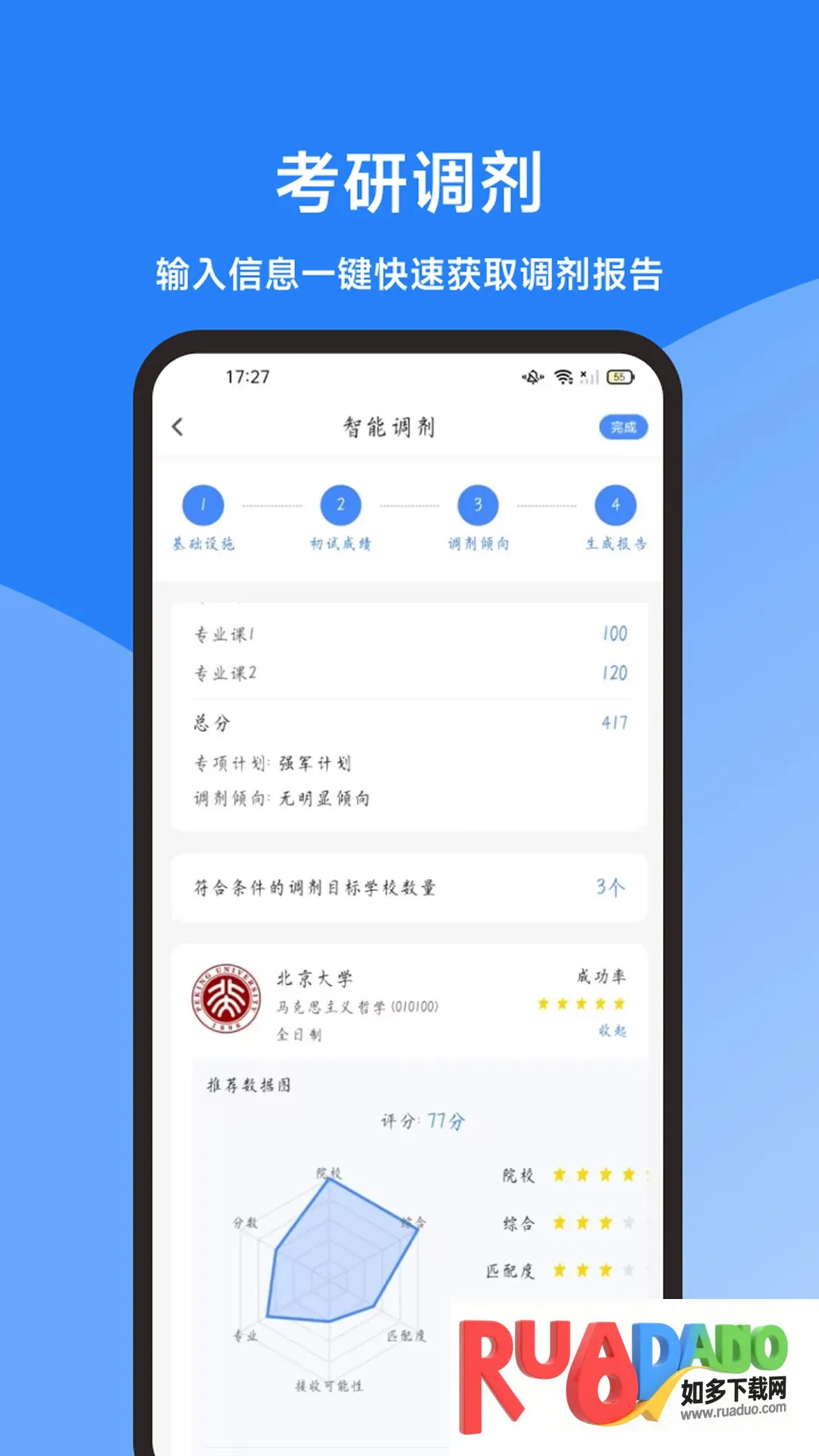 3. 日程提醒,自动推送成绩发布调剂系统开放等节点,生成个性化进度图。