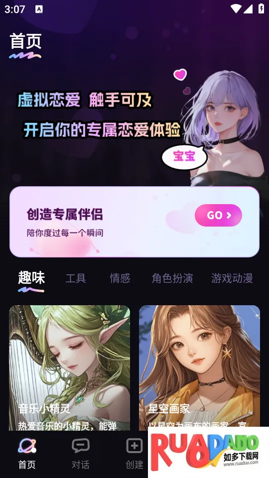 1. 这是一款主打情感陪伴、AI角色扮演的虚拟伴侣App,免费可玩基础文字聊天,深度体验需付费。