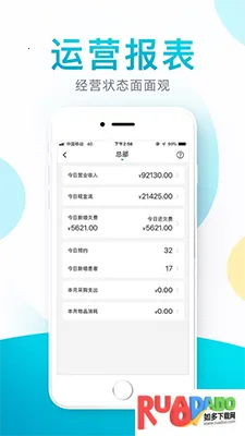 1. 移动端数据与PC端诊所云管理系统实时同步,方便医生随时随地掌握诊所运营情况。