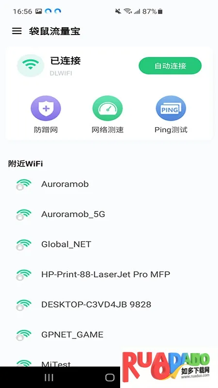 袋鼠流量宝是集流量管理、网络连接与WiFi共享于一体的智能工具。界面简约,能实时掌握流量,有报表统计、WIFI安全检测等功能,自带无痕上网,可一键优化,智能提醒,定制化设置,广告净化效果好。