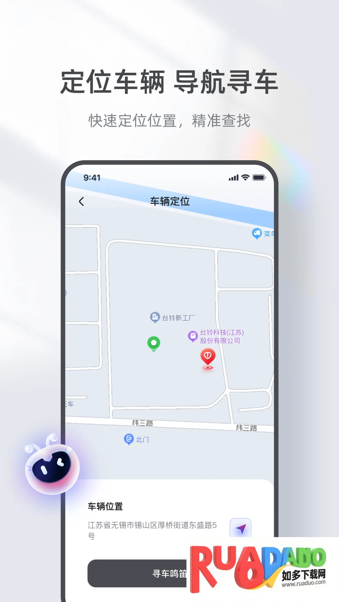 3. 定位车辆软件支持用户在线定位自己的车辆,实时的进行地图导航的查找。