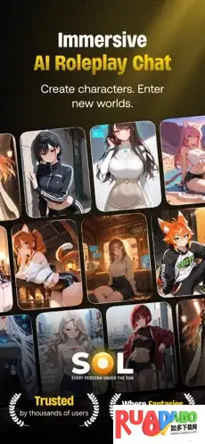 1. SolAI 有着庞大的 AI 角色库,能提供身临其境的陪伴体验,可自定义专属伴侣,随时无限制聊天互动。