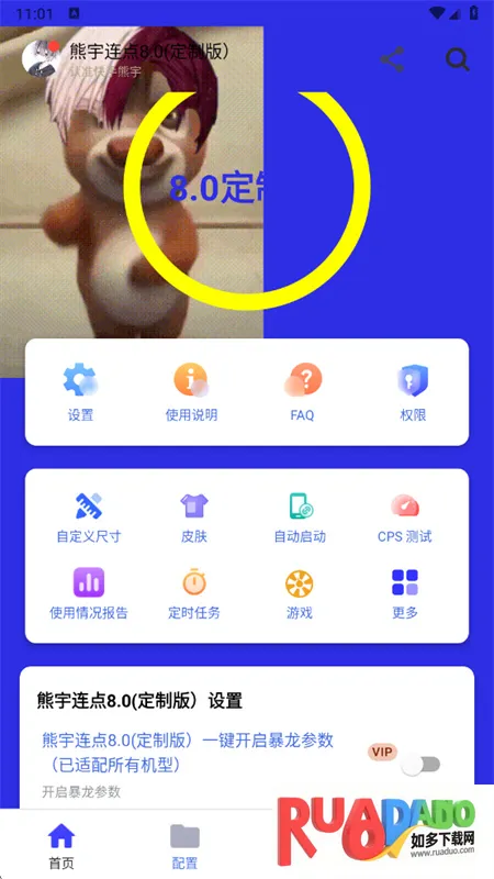 熊宇连点器3.0是一款专业手机连点器软件,操作界面简洁,有可视化坐标定位。提供多种启动模式与点击模式,兼容多数热门手游。内置智能识别,运行优化,非外挂,可自由调参数,免费且功能丰富。