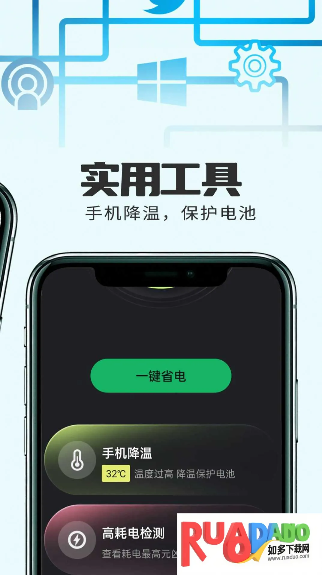 1. 支持一键降温,有效保护手机电池。