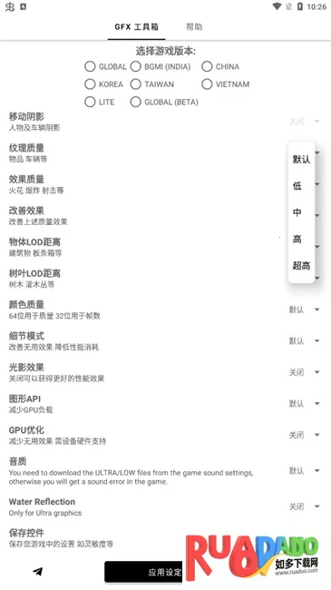 4. 能依据手机配置,自行选择合适的画质选项。