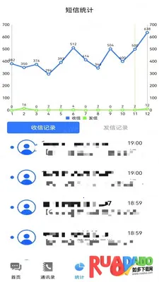 4. 清晰收发统计,掌握短信使用情况,了解沟通频率趋势。