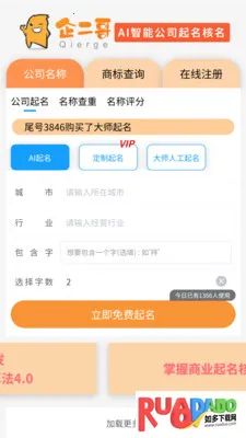 1、企二哥起名核名APP有庞大且不断更新的名称灵感库,涵盖多维度。