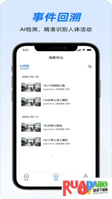 3. 智能事件回溯,通过AI人形移动检测,精准识别人体活动,过滤光影误报。