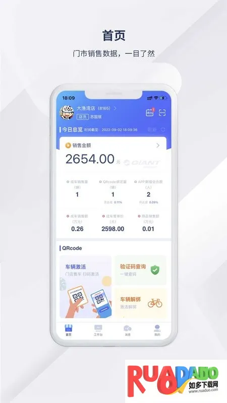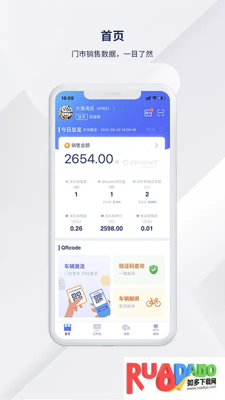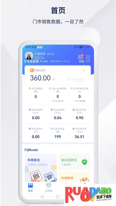 1、捷安特经营助手app能对门店进行各种管理,可查看销售数据各方面,让相关门店销售数据一目了然。