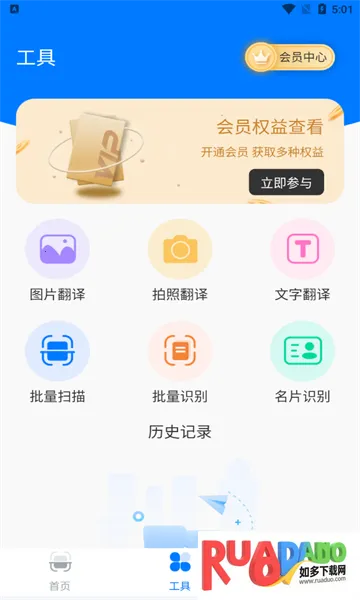 2、工具区整合图片及多种格式转PDF,并提供文本图片文件的翻译与历史记录,还含有备忘录。