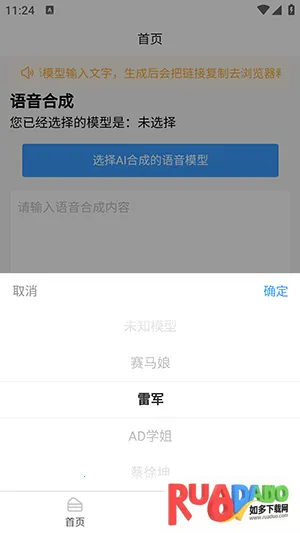 1、打开AI语音合成app,点击选择ai合成的语音模型