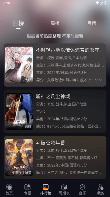 2、更新及时:能让用户第一时间触及动漫世界最新脉动,不错过精彩。
