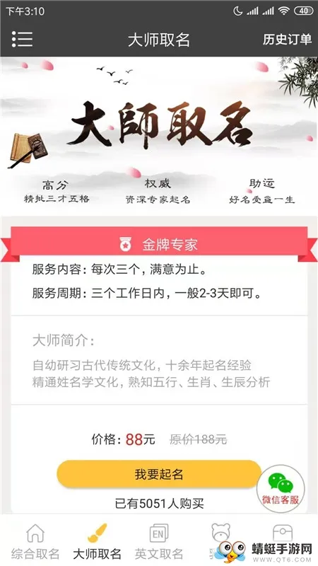 3. 采用传统八字命理,结合生辰八字定制名字,名字库融合多种古典元素。