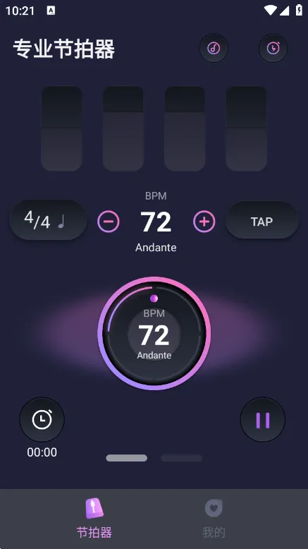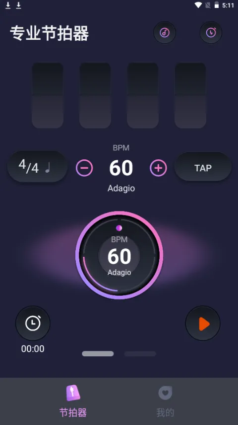 节拍器音准王是一款专业的音乐节拍器应用,旨在帮助音乐学习者有效练习节奏感和音准。它提供多种节拍类型、速度与高品质音色选择,支持自定义设置,界面简洁直观,助力用户提升演奏准确性与稳定性,轻松掌握节奏律动。