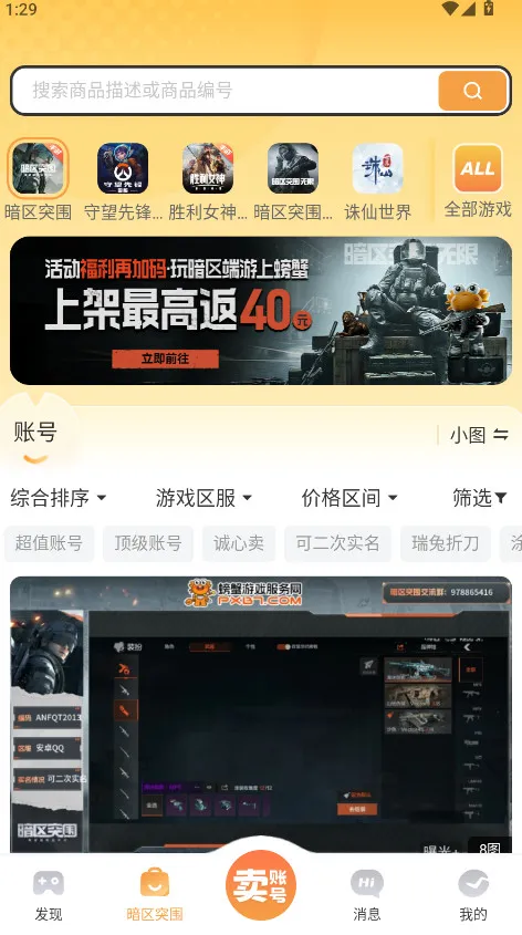 1、提供多种服务,满足不同玩家需求,涵盖账号估价、回收、代售等。