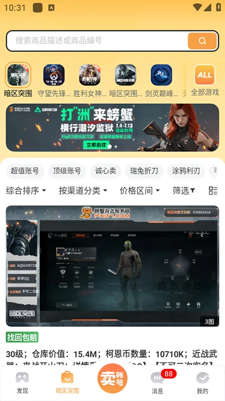 2、账号资源丰富,热门游戏全覆盖,百万账号海量优质,极品账号任君选。