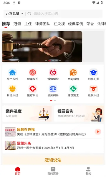 冠领律师是北京冠领律师事务所开发的法律咨询软件,提供房产、婚姻等各类纠纷咨询。有海量经验丰富律师,支持多种咨询方式,可查案件进度、学法律知识,功能丰富实用,能满足多样法律援助需求 。
