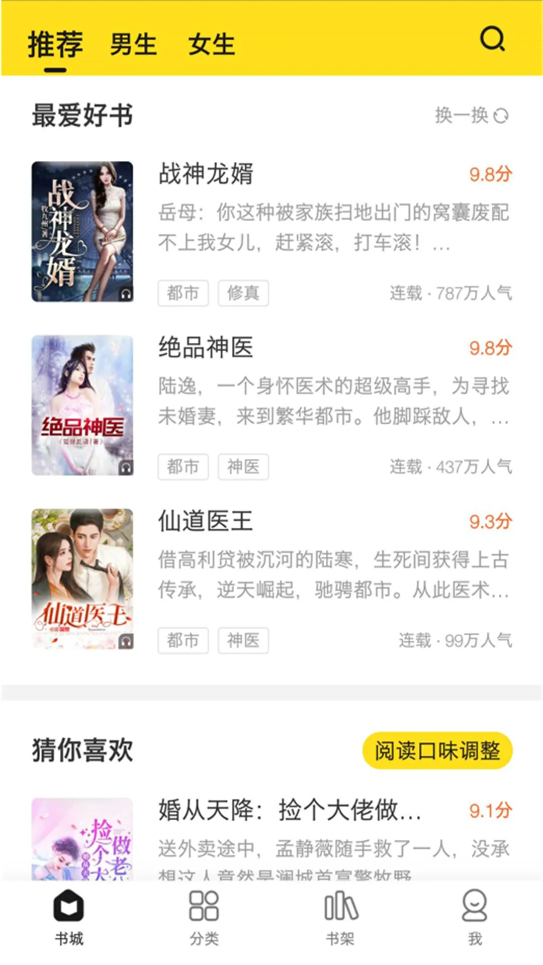 2、男女频道设置,为不同性别读者打造专属阅读空间。