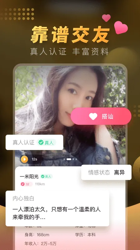 2. 真实交友环境:通过活体认证和人工审核,保障用户信息真实,不用担心照骗。