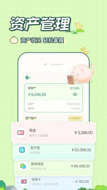 1、拥有全新记账玩法,可爱团团陪伴记录每一笔收支。