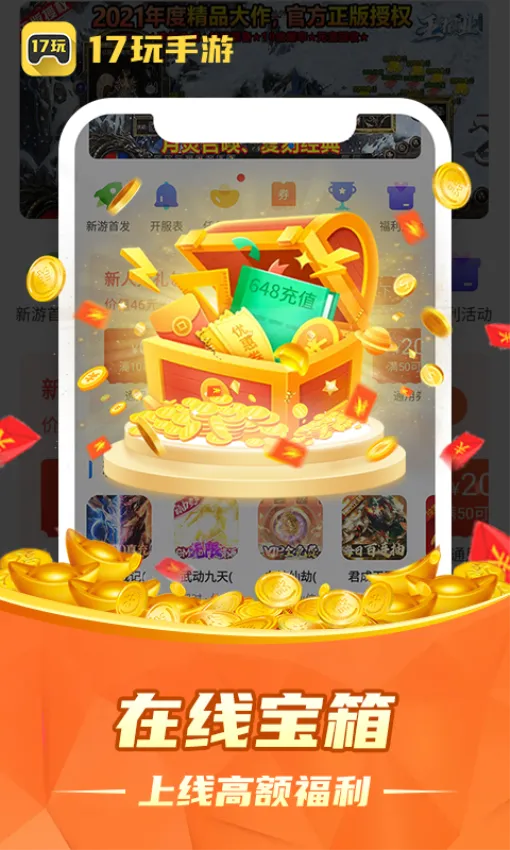 17玩手游2025最新版本是专业BT福利手游平台,提供海量正版热门游戏。下载高速稳定,有每日精品推荐。福利多,含免费首充等,账号可交易,界面优化,分类清晰,满足多样游戏需求 。