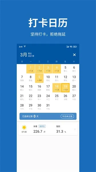 3、具备日历打卡功能,有助于养成良好习惯,不再拖延记录。