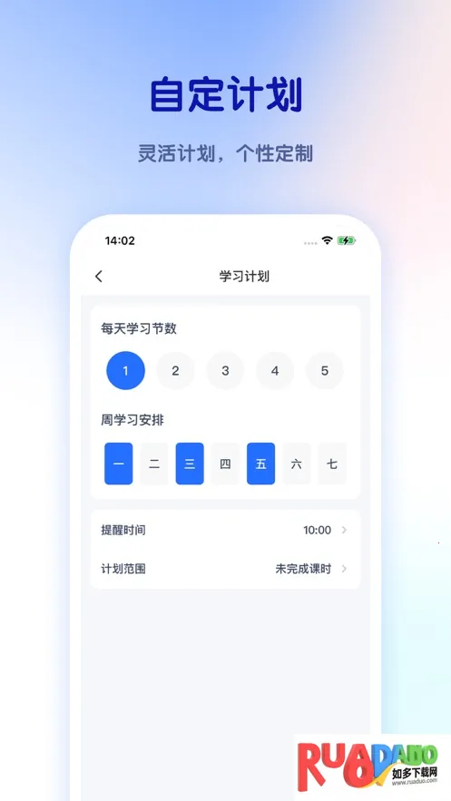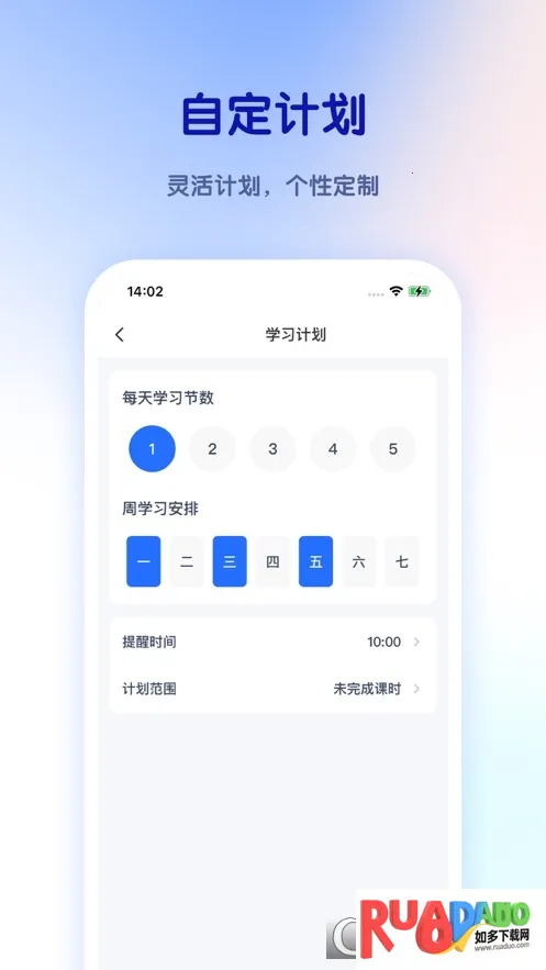 3、自定计划:灵活规划,依据自身情况实现个性定制。