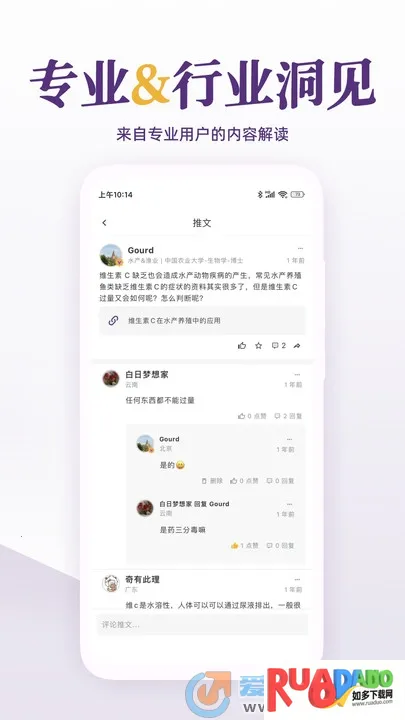 2. 交流互动性强,用户能发布业内经验、评论他人动态、分享转发优质内容。