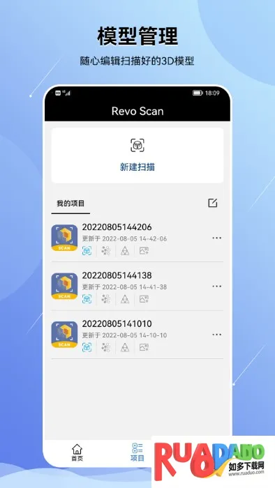 3、模型管理便捷:扫描项目在模型列表展示,可检查、编辑名称和删除模型,便于管理扫描项目。