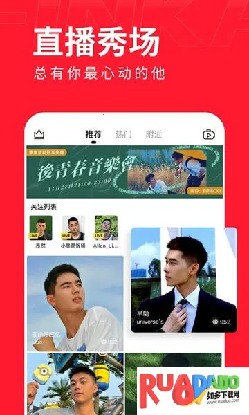 翻咔是北京猩球互动网络科技有限公司研发的同性交友软件。支持发现周边用户,有惊喜翻咔、互动直播等功能,具备多种特色与优势,能满足多样交友需求,还注重隐私保护,带来新鲜交友体验 。