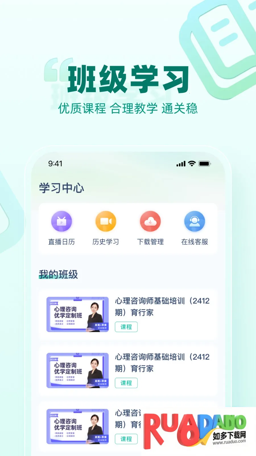4、便捷学习管理:支持PC端、手机APP、平板三端数据互通,教师上传资料,用户可一键下载至本地。