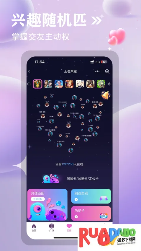 1、能帮助游戏玩家找搭子,结识众多伙伴,轻松组队。