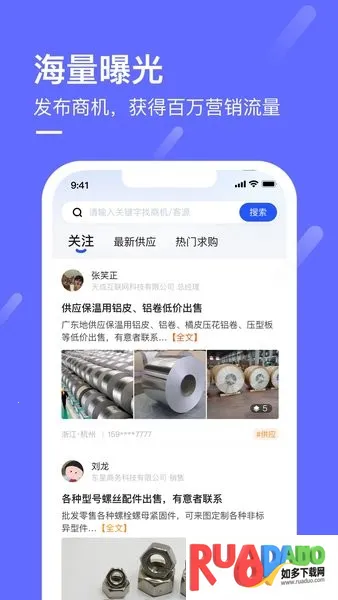 3. 曝光机会海量,发布商机可获百万营销流量,让企业和产品得到更多关注。
