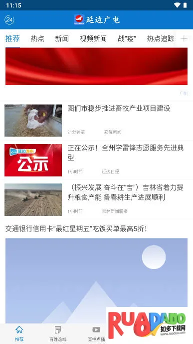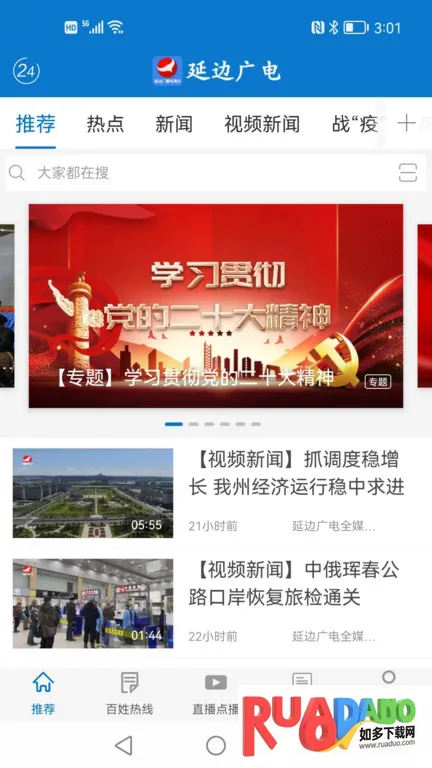 延边广电安卓版是延边本地官方融媒体平台,由多方主管主办。界面简洁、内容丰富,涵盖各类新闻资讯,提供广播电视节目点播,设有互动广场。具备政务、服务等功能,还能智能推荐个性资讯,优化修复持续进行 。