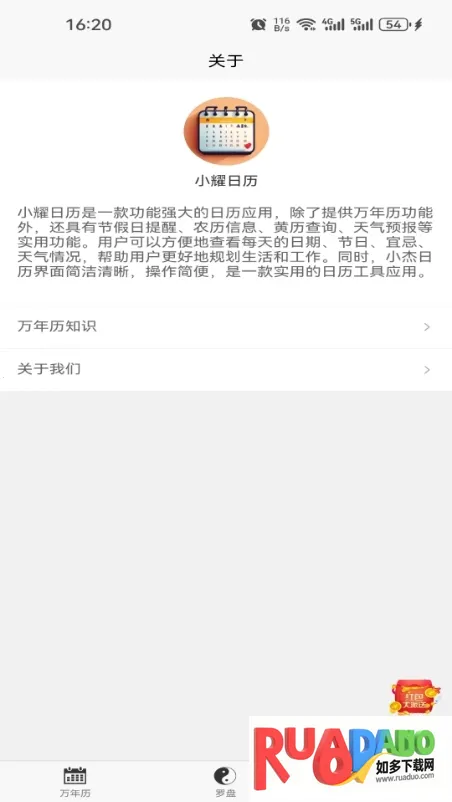 小耀日历安卓版是免费的手机日程管理助手。布局简洁、操作便捷,一键获取万年历信息与每日宜忌。能直观查看节假日,支持添加行程,按任务时间排序提醒,还有丰富扩展功能,满足多样需求 。