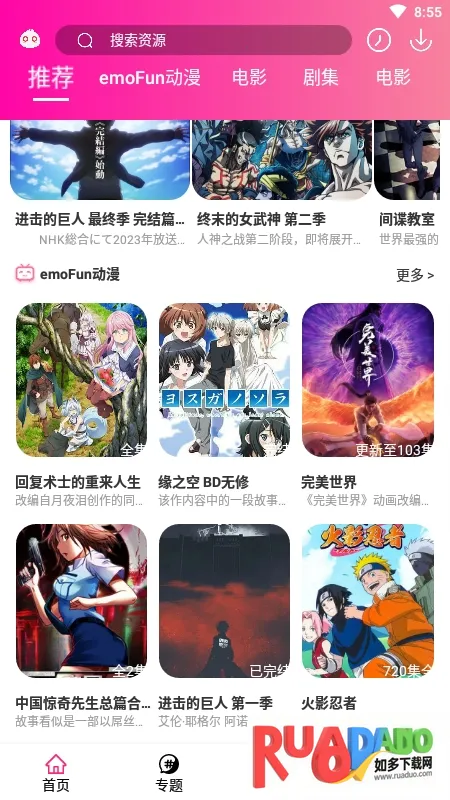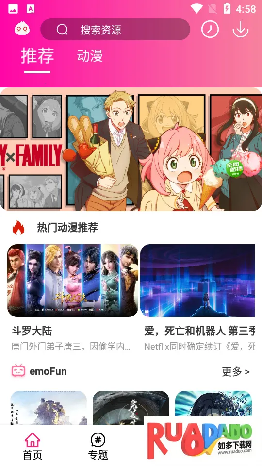 emoFun2025是一款二次元追番神器,资源丰富,涵盖动画、漫画、绘本。正版超清,免登陆、无AD,支持缓存、投屏与小窗口播放。有详细分类、资讯榜单,能满足用户多样追番需求 。