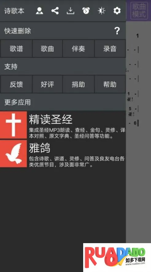 1. 诗歌资源丰富,涵盖福音诗歌、圣徒诗歌等1000多首,包含歌谱、歌曲,部分还有伴奏。