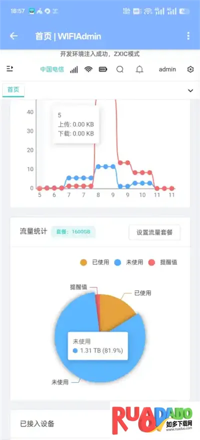 4、工具专一围绕随身WiFi设置,使用免费,对其他应用无限制,呈现数据清晰 。
