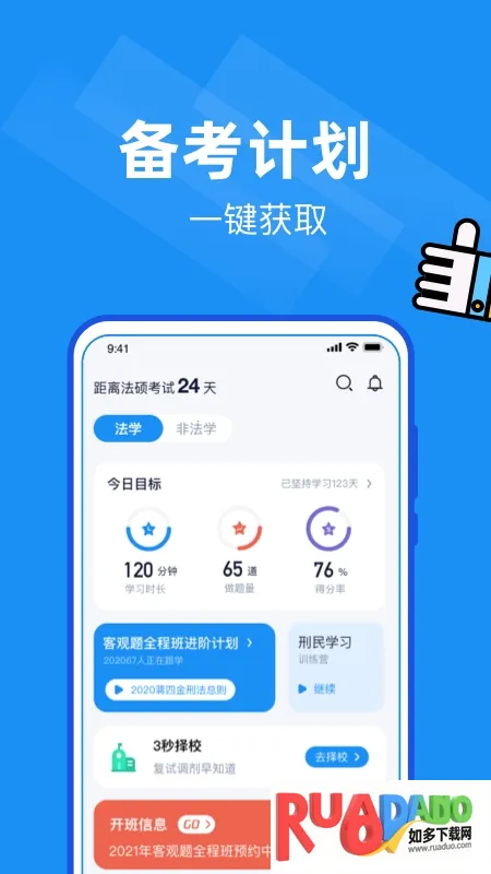 觉晓法硕 2025 最新版是觉晓教育推出的法硕在线学习平台。有课程、练习、模考等功能,特色是大数据记录学习情况,还提供免费定制计划、AI 批改等。内容丰富,助力考生高效备考、顺利通过法硕考试 。