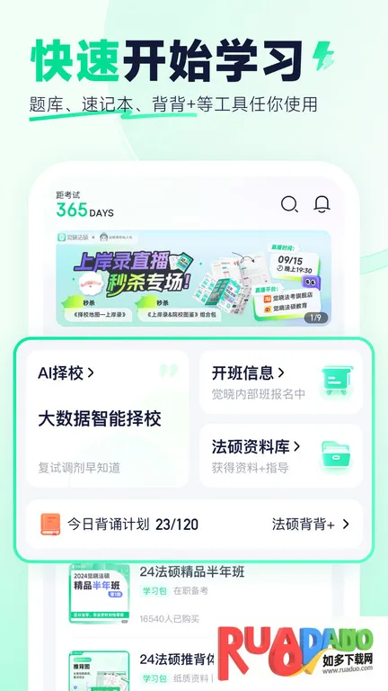 4. 功能实用:法硕背背编写1000题库,有择校小程序,助力背诵与节省择校时间 。