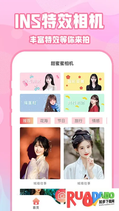 ins特效相机是一款创意手机摄影应用,提供海量滤镜、贴纸与多样模板。支持实时预览,能实现漫画脸、异性转换、发型测试等特色功能。操作简单,作品可分享至社交平台,满足多种拍摄需求 。
