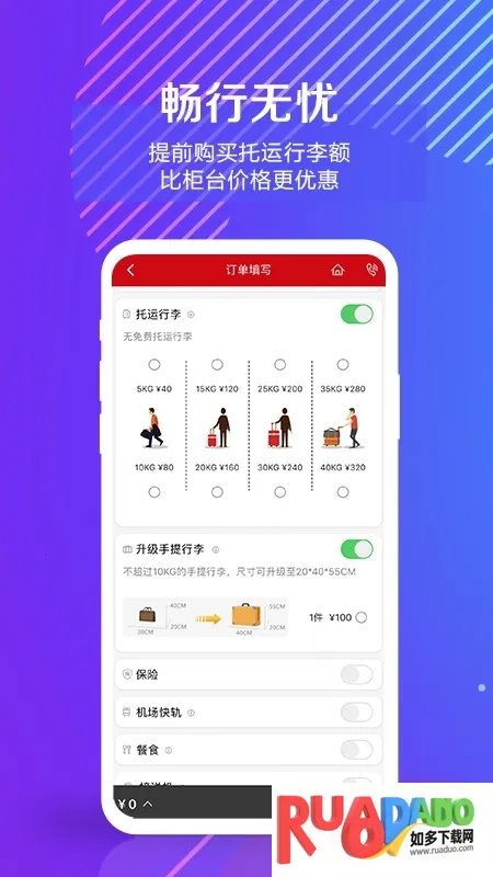 3、增值服务丰富,可在多个页面便捷选购行李、餐食等附加服务。