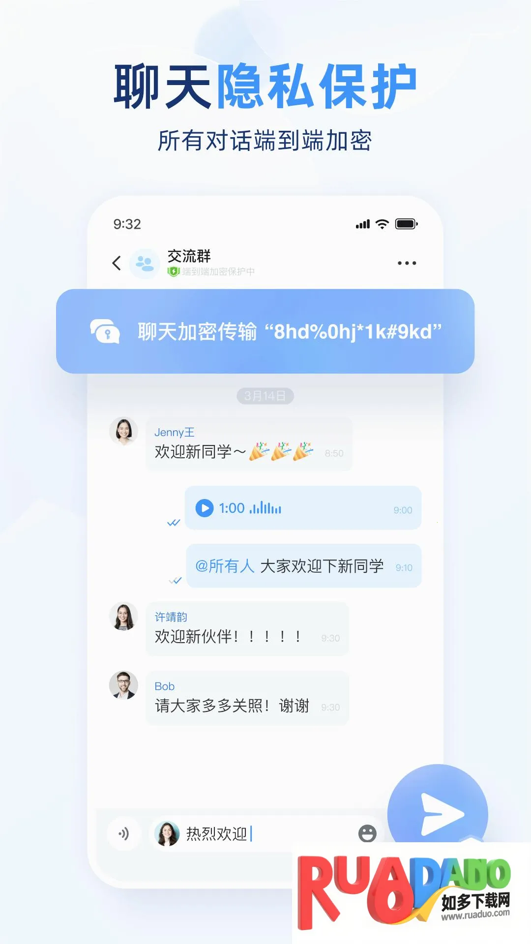4、提供高效体验,可轻松快速传递信息,保持高效沟通,且消息加密传输,确保用户隐私 。