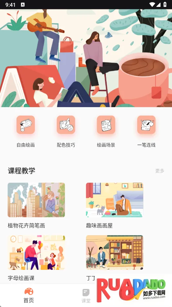 画画酱安卓版是一款实用免费的绘画教学软件。提供丰富课程,涵盖多种画种,适配不同技能水平。操作简便,有海量素材,能实时互动,还有专门老师指导,满足多样绘画需求 。