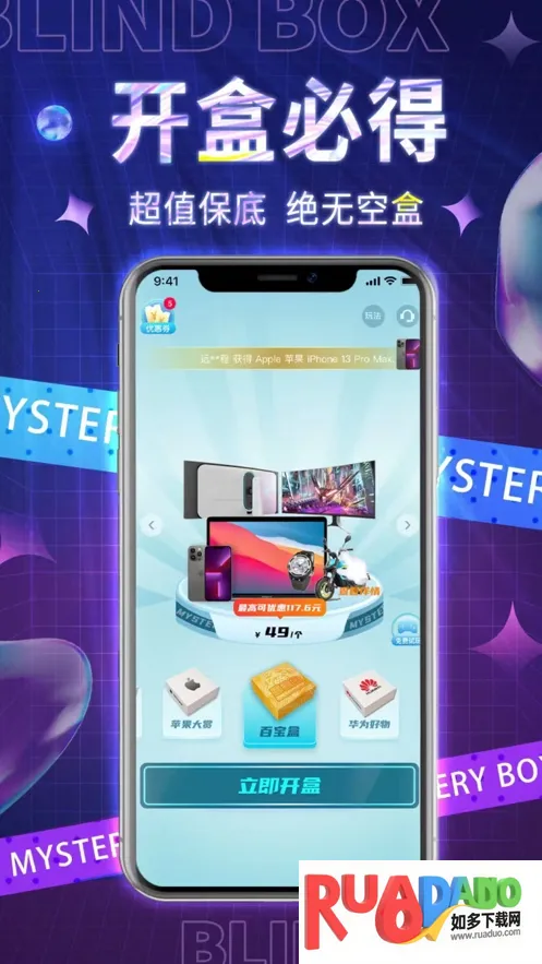 百宝魔盒安卓版是线上盲盒购物软件,提供海量爆款盲盒,涵盖数码、手办等多样潮品,正品保障无空盒。支持在线开箱、等值兑换,有满减优惠,还能追踪潮玩资讯,给用户趣味购物体验 。
