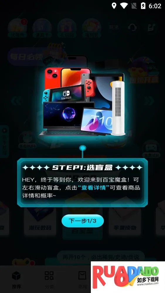 1、拥有海量盲盒,涵盖各种火热爆款,无论是电子数码、玩偶手办还是潮款单品都有,类型多样。