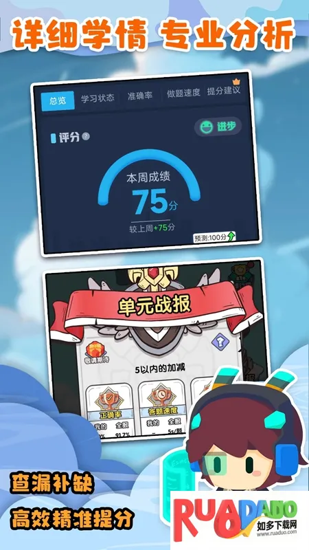 4. 模式多样:设有单元期中和期末关卡,还有多人口算对战,增加趣味性与竞争性 。
